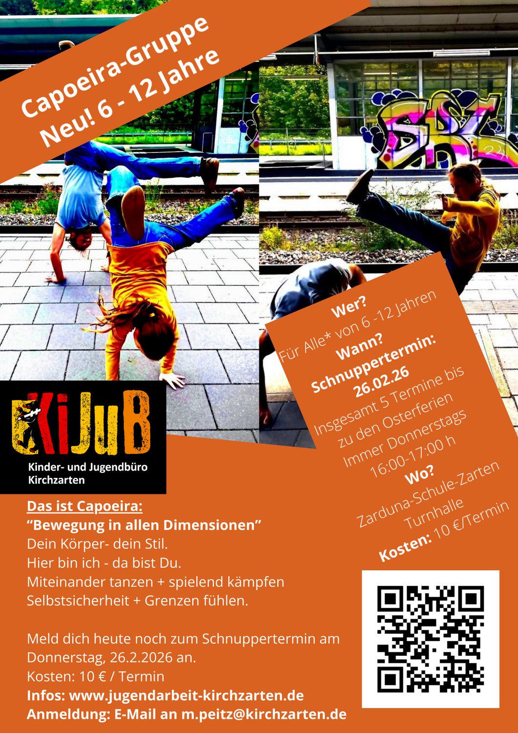 Die Kosten betragen 10 € / Termin. Wenn es dir gefallen hat, kannst du dich für vier weitere Termine bis zu den Osterferien anmelden.