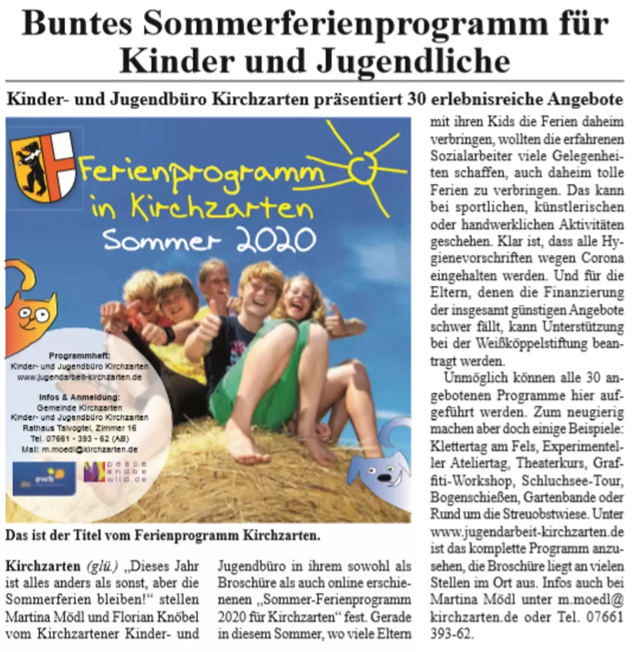 Artikel zum Sommerferienprogramm in der Badischen Zeitung vom 13. Juli 2019